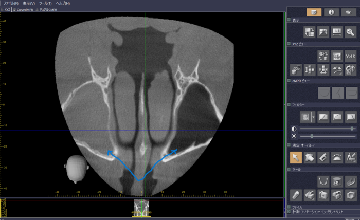 今回インビザラインのクリンチェック作成をスムースにするためにCTを導入するきっかけにはなりましたが、歯科の領域で3次元で口腔内や、歯牙、上顎洞、顎骨など見て、診断に役立てることができます。万能ではないにしても、これまで、立体(3次元)を平面(2次元)で見て、診断していたものを3次元で見ることが出来るようになって幸せです。もっと早くから導入していたらよかったと思います。