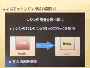 小さな修復物でも、理想的にはセラミックを使うのがいいのですが、小さいものは取扱いに大変困ってしまいます。小さいと出来上がったものを調整研磨しているときに、どこに行ったか分からなくなってしまうこともあります。みと歯科・矯正歯科では、小さい修復物はコンポジットレジンで、大きな修復物や隣接面を含む修復物はセラミックを使った修復物をすすめています。大きな修復物の形態、特に隣接面の形態、隣接面のくっつき具合をコンポジットレジンで適切に作るのは大変難しく、セラミックをコンピュータで設計し削りだす方が正確です。重合収縮は、コンポジットレジンにはどうして避けられない物理的な性質ですから、それに賢く対処していくことが、2次カリエスを防ぎ、一度治療した歯を長くもたせる秘訣だと思います。(図5)