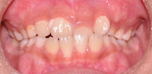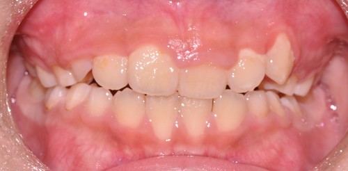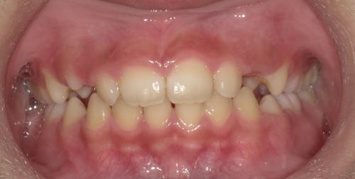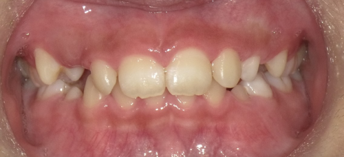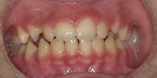 前歯が全体的に受け口になっている症例はもちろんですが、下の写真のように1本だけ反対になっている症例にも効果があります。