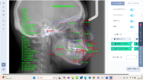 これだけデジタル化が進んでいます。ChatGPTも普及し、AIがいたるところで活用されています。矯正のレントゲン写真にしても、AIによる分析が当たり前のようになってきました。これまで一時間以上かかっていたセファロというレントゲンの分析が、数秒でできるようになりました。このWebCephというソフトを患者さんすべてに使っています。このソフトは、すでに数年前からありますが、かなり普及してきています。